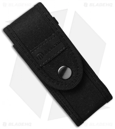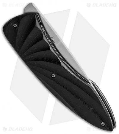 A defining feature of the Fly folder is its fanned, fluted handle. Machined from black G-10, it provides a striking visual of this high tech material, which is also used for the solid backspacer between the stainless steel liners. The Fly has a spear point style blade that coincides with the tapered handle shape. Maserin has supplied a buckled nylon sheath to accompany this knife.