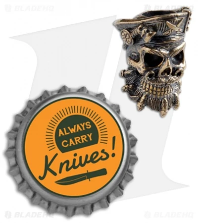 This Bearded Pirate Skull lanyard bead from RUS Beads Shop is made from bronze with intricate handmade detail. The bead is easily attached to paracord lanyards and features a large opening at the bottom to hide knots. Add this custom bead to your knife, zipper pull, or other EDC accessories to truly make them your own.