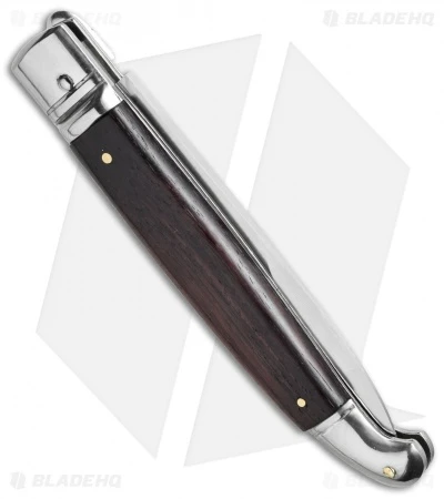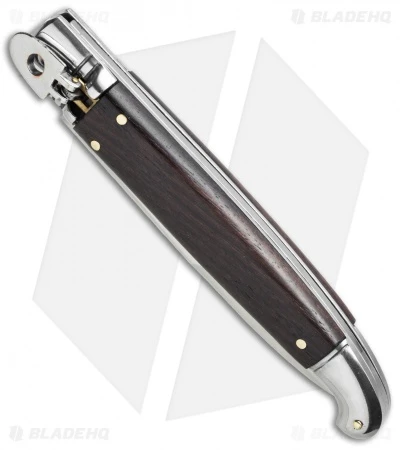 SKM 9.5″ Fancy Lever Lock Automatic Knife Dark Wood (4″ Satin Bayo)