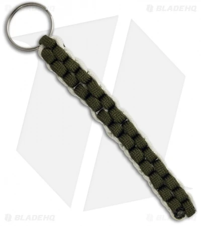 White & OD Green 550 Paracord Lanyard Keychain Boondoggle W/ Split Ring